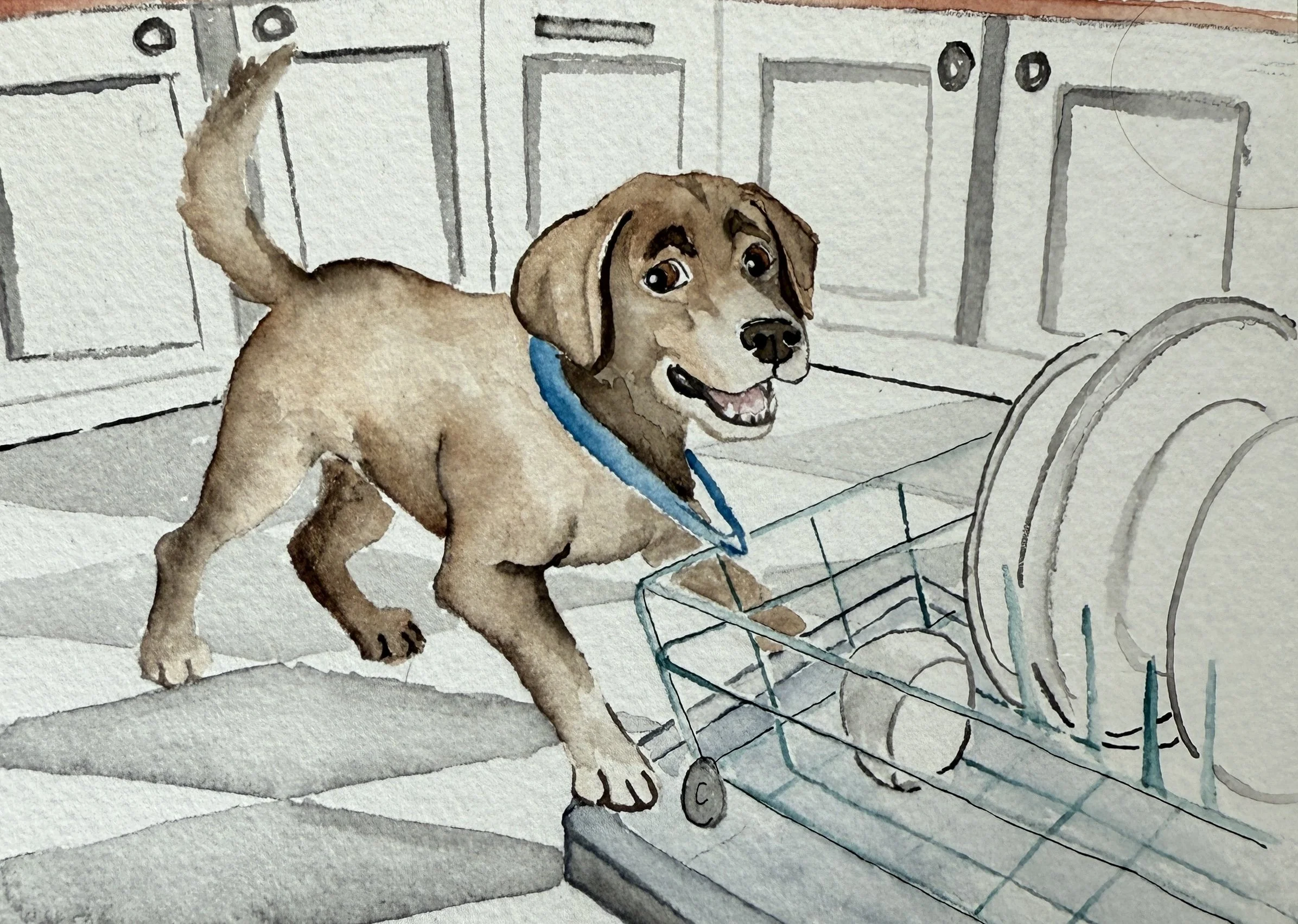My first illustrated children's book is almost here, and it stars a chocolate Lab! Dishwashers, Sneezes, and Flies is a story about a lovable pup named Charlie learning to be brave. I had the joy of bringing Jennifer Bobay's writing to life through my watercolor illustrations. Join the waitlist to be the first to know when it launches!